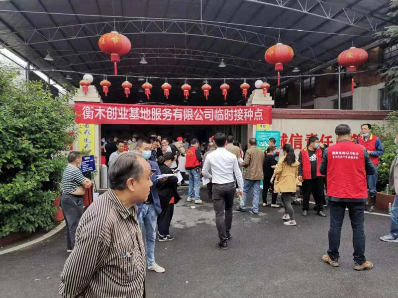 為協(xié)助屬地政府集中做好新冠疫苗接種工作,5月25日至5月27日,衡木創(chuàng )業(yè)基地服務(wù)有限公司黨支部在園區設立新冠疫苗臨時(shí)接種點(diǎn),前來(lái)接種新冠疫苗的居民群眾佩戴口罩,有序排隊等待接種。