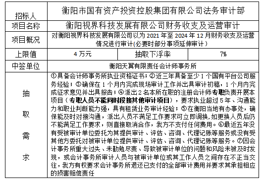 衡陽視界科技發(fā)展有限公司財務收支及運營審計項目抽取結果公示
