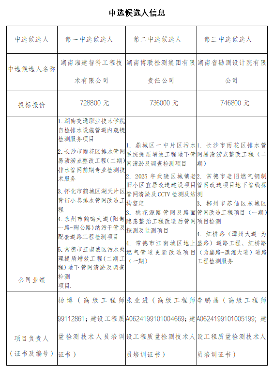衡陽紡織機(jī)械廠地塊地下管網(wǎng)盲探及檢測工程公開比選中選候選人公示