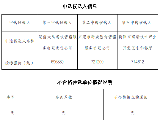 衡陽國投集團員工食堂勞務承包服務單位公開比選中選候選人公示